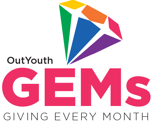 When you become an OutYouth GEM, you’re joining a community of supporters who are Giving Every Month to ensure continuous support for the LGBTQIA+ youth we serve and believe in a year-round commitment to love, affirmation, and acceptance.